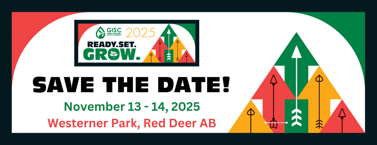 The 2025 Green Industry Show & Conference (GISC) is back November 13 & 14, 2025 at Westerner Park in Red Deer. Our theme this year is Ready.Set.Grow! and with a conference program aimed to inform and inspire everyone from designers to arborists, owners to students, growers to contractors, numerous networking and social events, plus a tradeshow, it is the largest green industry event in Western Canada and is an annual must-see event. For more information on GISC or to view the full conference program and register, visit www.greenindustryshow.com.