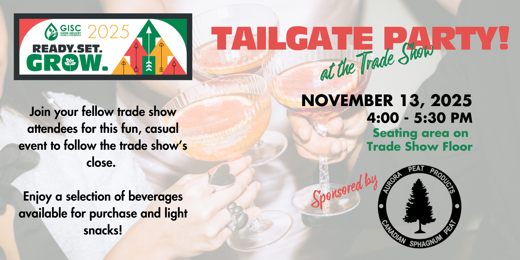 Join us for a drink and some snacks at our Tailgate Party!  Our Tailgate Party will take place in the Seating area on the Trade Show floor on Thursday, November 13th at 4:00 pm.  This annual mix and mingling of exhibitors is always a good time!